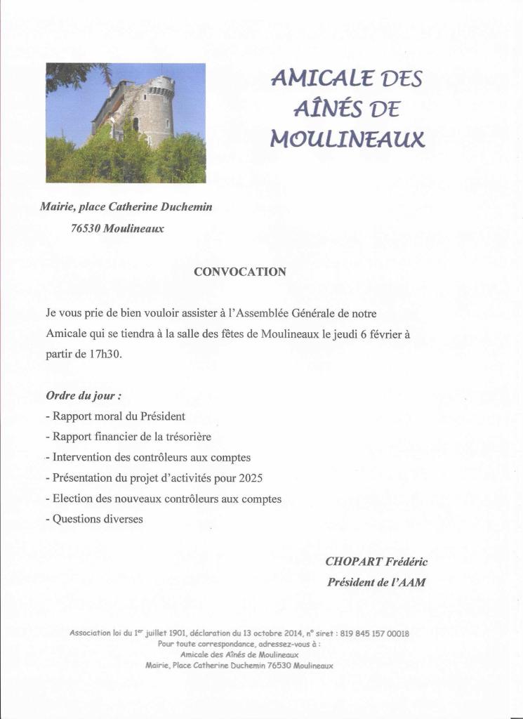 ASSEMBLEE GENERALE DE L'AMICALE DES AÎNÉS DE MOULINEAUX